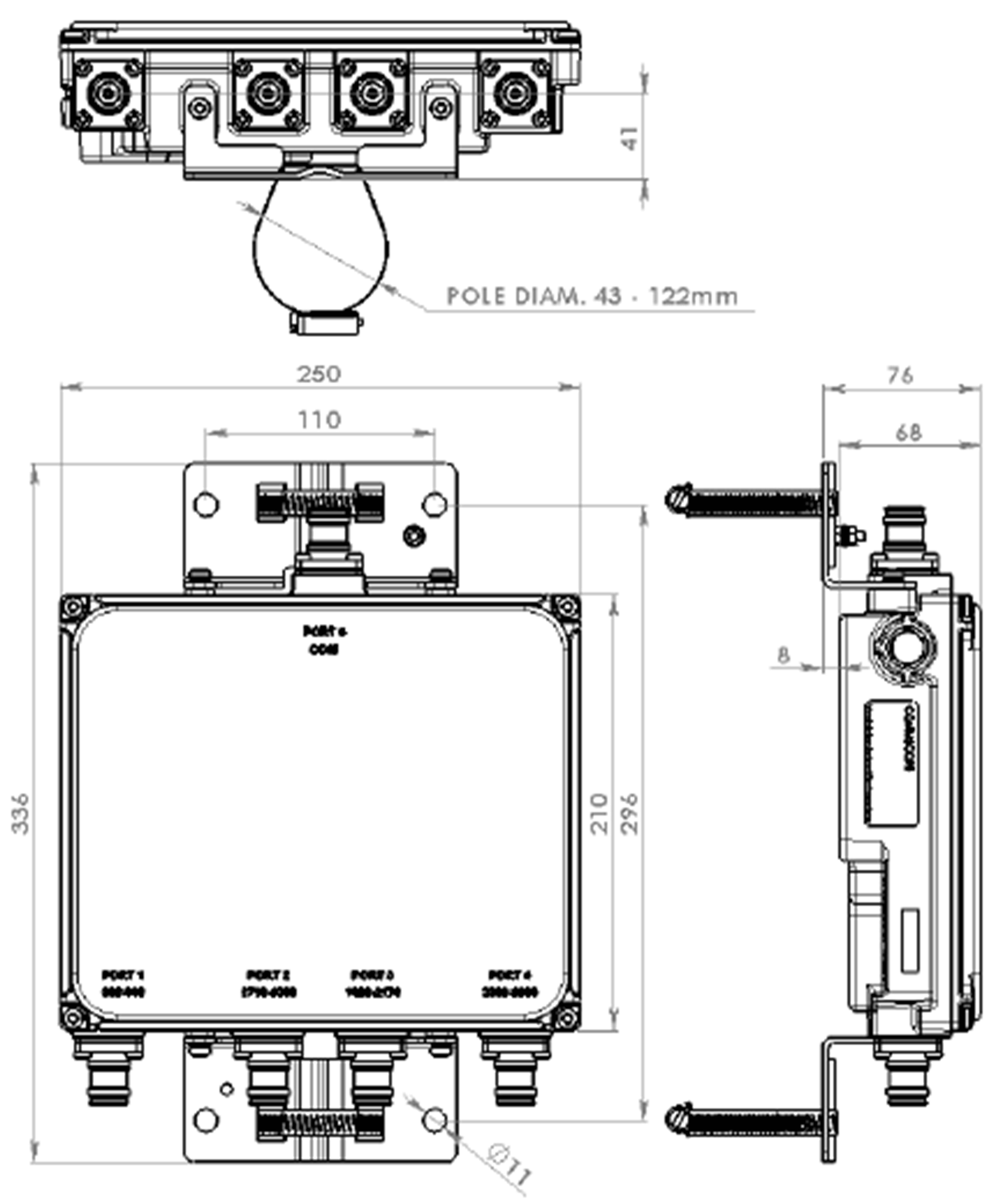| Port Designation | PORT 1 698-960 | PORT 2 1710-1880 | PORT 3 1920-2170 | PORT 4 2300-2690 |