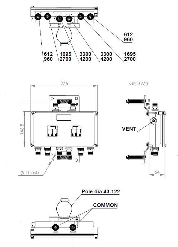 Frequency Range, MHz 617–960 1695–2700 3300–4200