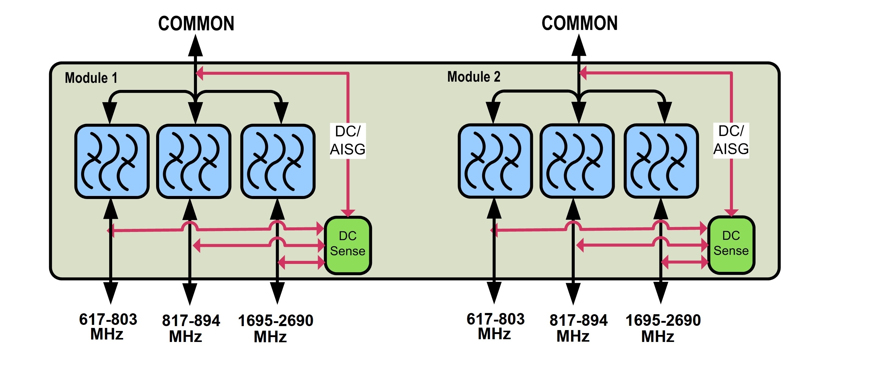 Twin Triplexer 600/800/AWS-PCS-WCS-BRS, DC Sense, 4.3-10