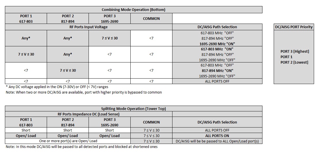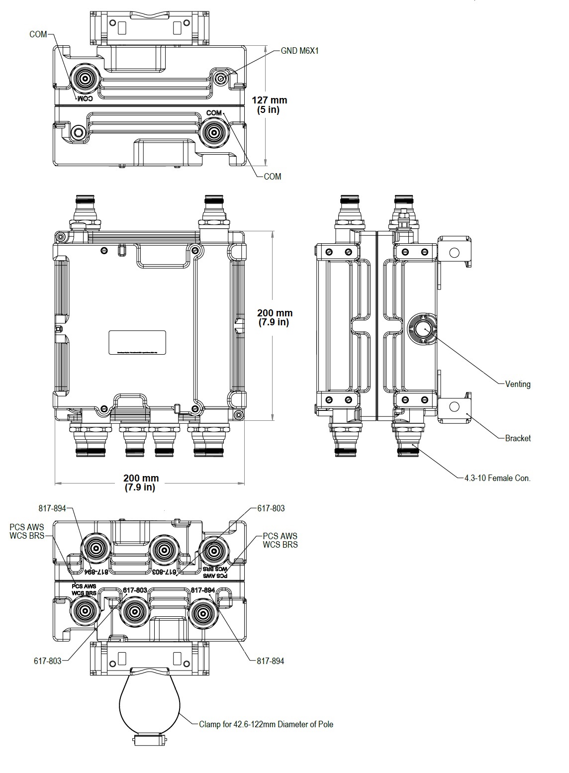 License Band USA 600, Band Pass; USA 700, Band Pass; USA 750, Band Pass CEL 850, Band Pass; LMR 800, Band Pass AWS 1700, Band Pass; PCS 1900, Band Pass; TDD 2600, Band Pass; WCS 2300, Band Pass