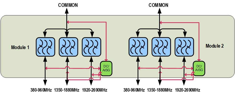 | dc/AISG Pass-through, demultiplexer | Autosensing |