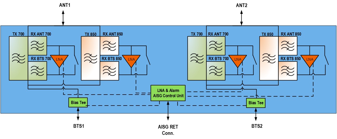 | Product Type | 2-BTS:2-ANT (Uniplex) | Tower mounted amplifier |