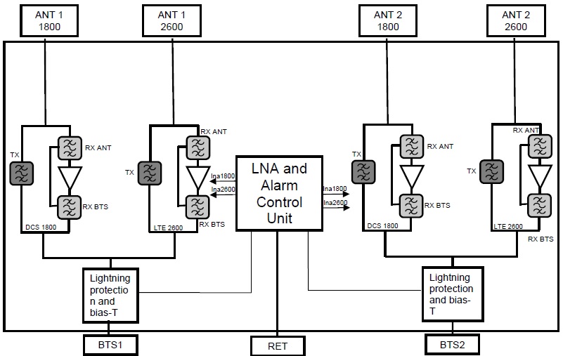 | Product Type | 1-BTS:2-ANT (Diplex) | Tower mounted amplifier |