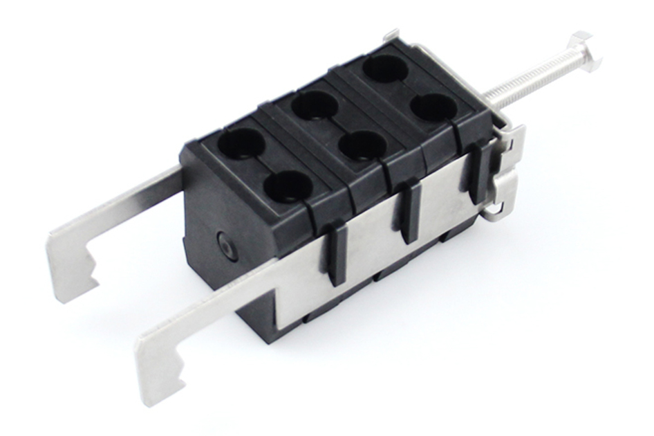 KwikClamp™ Hanger for power & fiber cables, two 4.5-9 mm holes (alongside each other), triple block; includes hardware