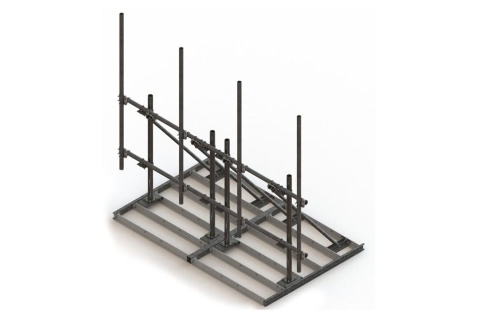High Capacity DUAL Non-Penetrating Roof Frame, 12 ft face, three 2-7/8 in OD x 126 in pipes