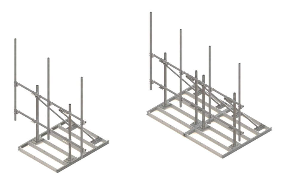 The RT-Series rooftop mounts all feature heavy duty 2 7/8” OD face pipes and up to 5 2-7/8” (face width dependent). The frame features built-in mechanical adjustments for roof pitch with either single or dual frame versions to maximize load bearing capabilities.