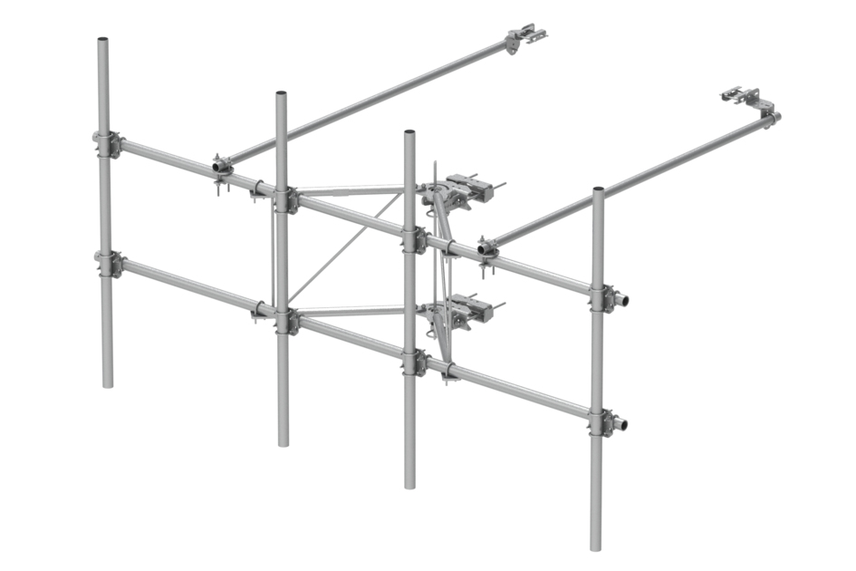 | Included | Frame | Pipe mounts | Plain end pipes (4) | Stiff arms (2) | Tower attachment |